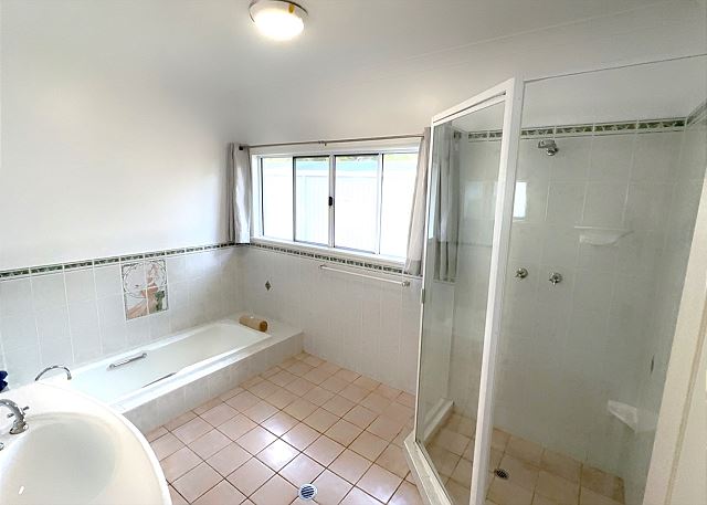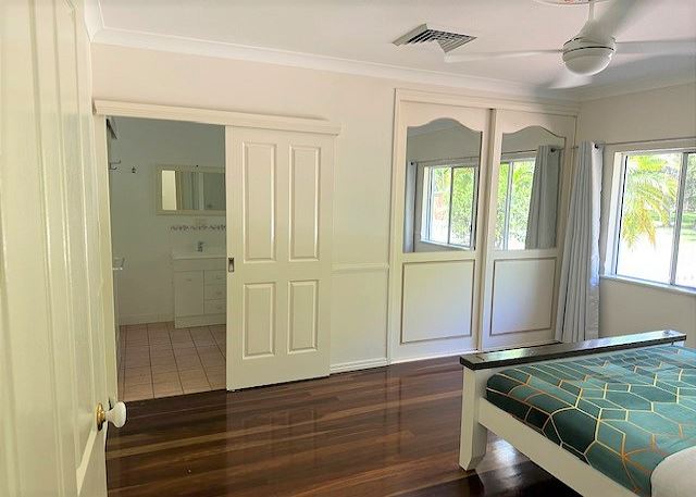 BEDROM 1 – The spacious master queen bedroom has mirrored wardrobes and ensuite bathroom with shower and toilet. The bedroom overlooks the lush tropical gardens.