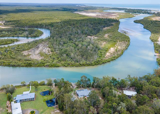 Situated between Hervey Bay and Burrum Heads, right on the banks of the beautiful Beelbi Creek, the leafy 5 acre hideaway, Toogoom Retreat, is adjoined front and back by State Forest and Marine Reserve.