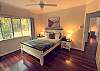 BEDROOM 3 – The bedroom has a comfy double bed, a chest of drawers, and a ceiling fan. The room overlooks the tropical gardens.