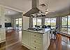 KITCHEN – The large kitchen has plenty of storage space, walk-in pantry, wall oven, a cooking island with a 5 burner Glem gas cooktop, dishwasher, fridge/freezer and water views.