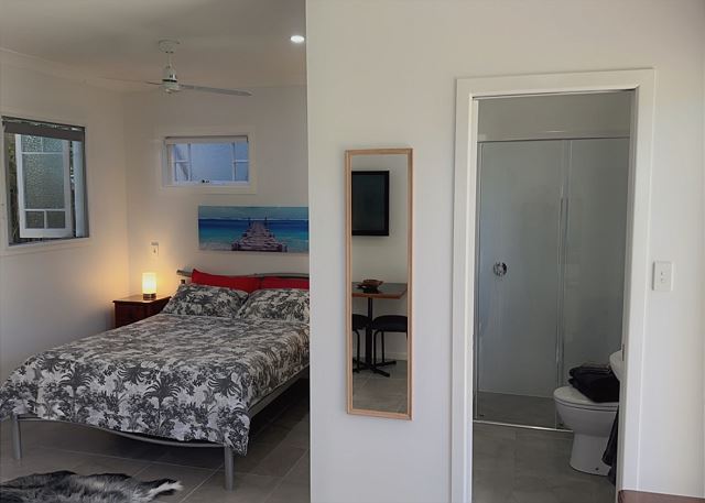 Nestled snugly between Hervey Bay and Burrum Heads, Sandy Toes Beachside Pad rests right on the pristine shores of Toogoom Beach. This charming studio exudes a vibrant and airy ambiance, boasting a plush queen size bed, a private ensuite, and a convenient kitchenette equipped with a fridge, microwave, air fryer, sandwich maker, two stovetop elements, kettle, and toaster. For additional guests, a pull-out sofa is available. For utmost comfort and privacy all windows are fitted with flyscreen's and blinds.