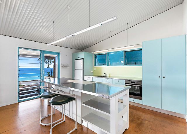 The upstairs living feels spacious with extra high ceilings, louvre windows in the bedrooms, and windows right along the hallway to allow the beautiful sea breezes to flow through.