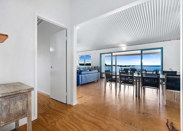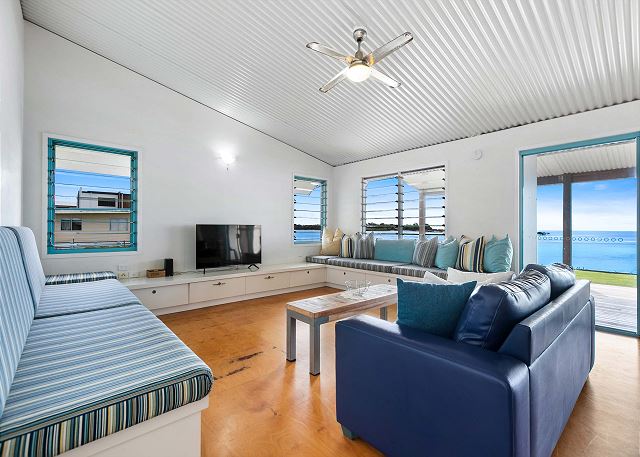 Living – The large open-plan lounge, dining, and kitchen offer a great space for everyone to come together. Wide sliding doors open out on the expansive timber deck with a 5 burner BBQ. The deck overlooks the water and is the perfect place to sit and watch the world go by.